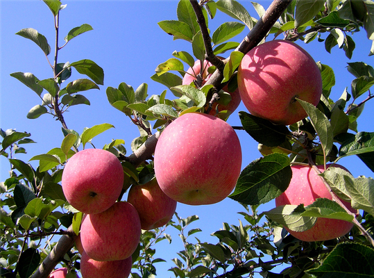 「おおわに高原りんご」は高原地帯特有の寒暖差や、りんごに適した地質などにより、色、香り、触感が良く、味の濃いりんごです。